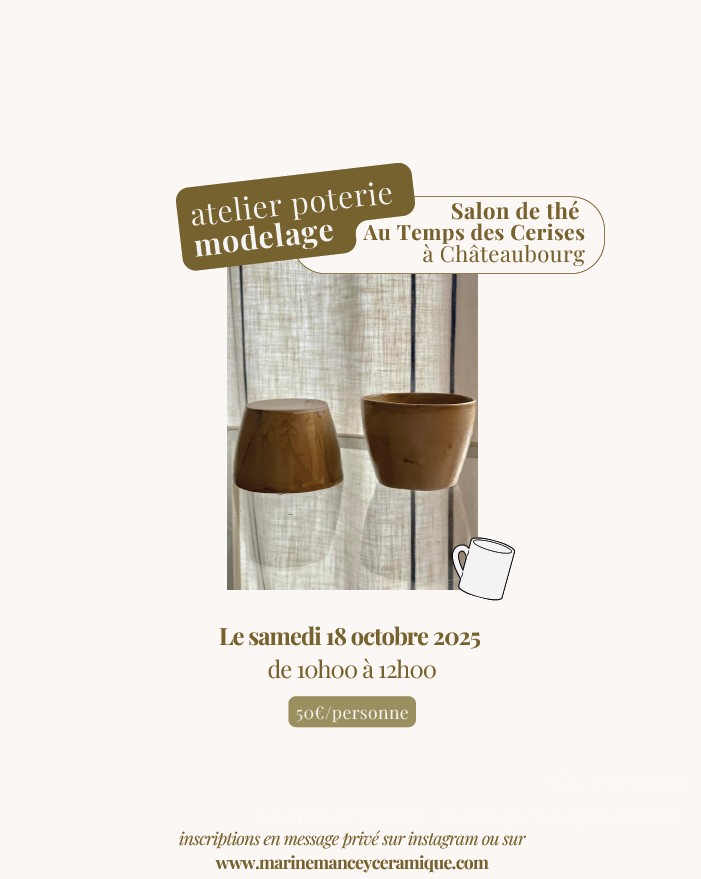 ATELIER DE POTERIE MODELAGE Samedi 18 octobre 2025