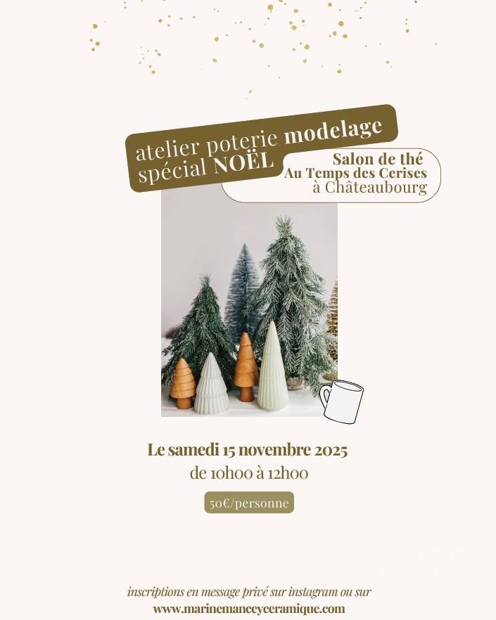 ATELIER DE POTERIE MODELAGE SPECIAL NOËL Samedi 15 novembre 2025
