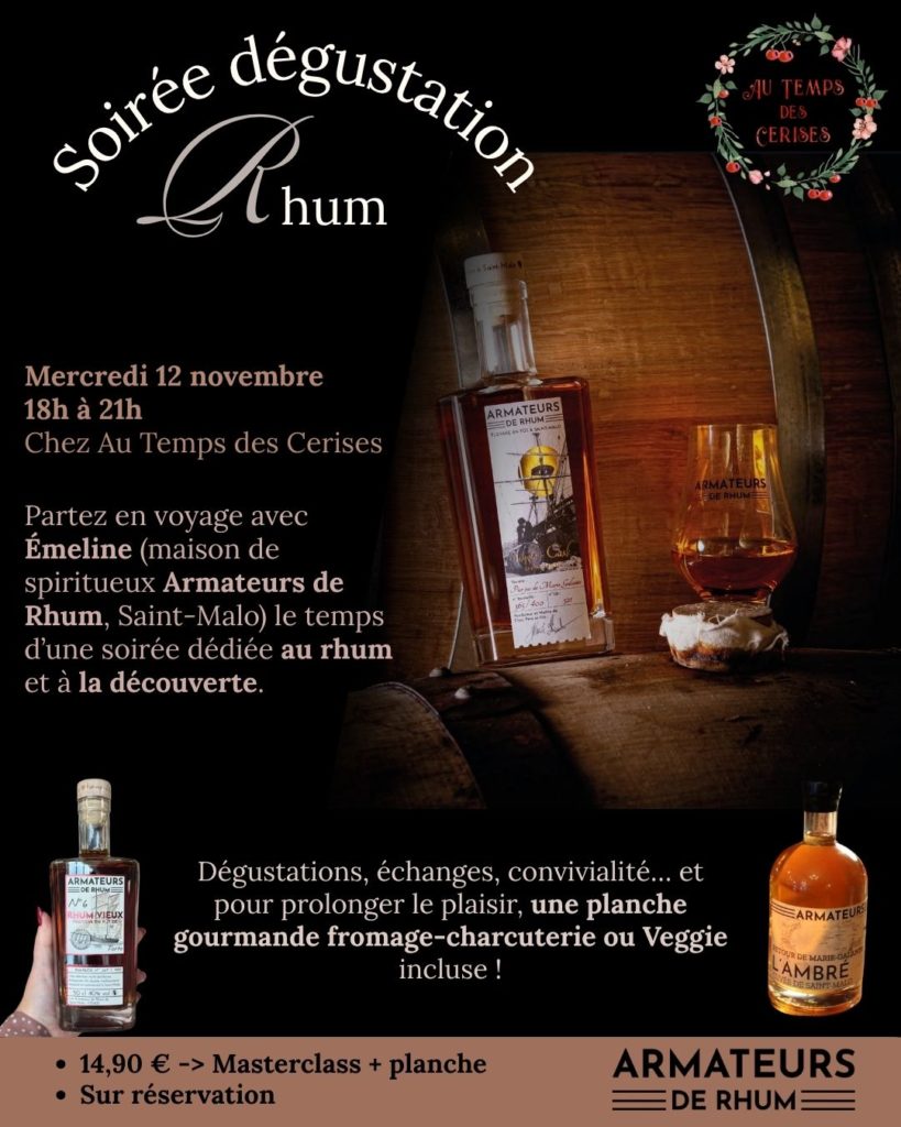 Le mercredi 12 novembre, embarquez pour un voyage sensoriel autour du rhum en compagnie d’Émeline, ambassadrice passionnée de la maison des spiritueux Armateurs de Rhum de Saint-Malo.